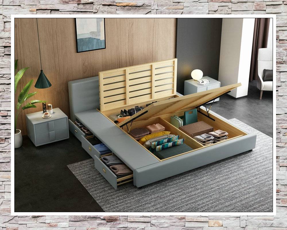 北欧免洗科技布床现代简约轻奢小户型主卧布艺软包储物实木双人床