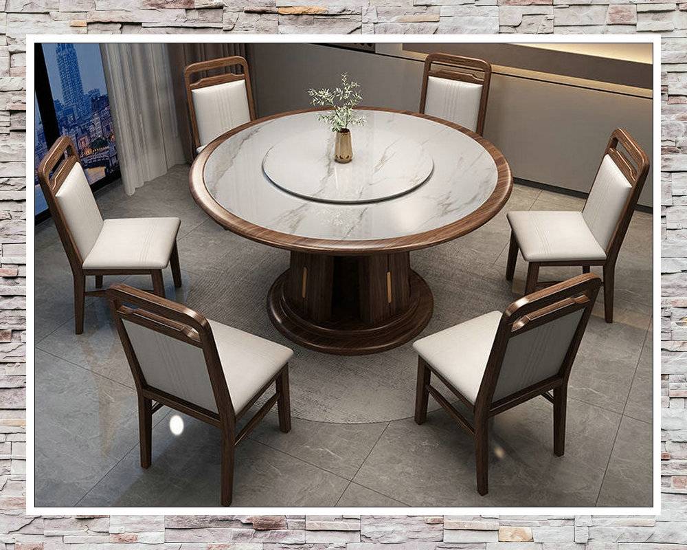 全实木乌金木岩板餐桌椅组合实木餐桌带转盘圆桌家用饭桌吃饭桌子